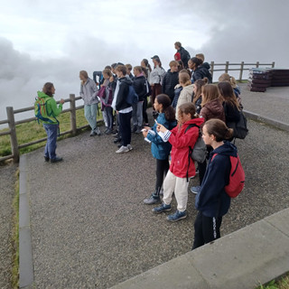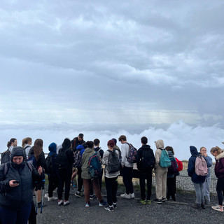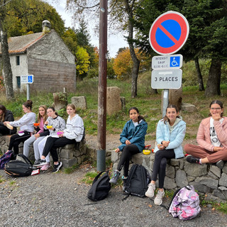 Ensuite on a pique-niqué au pied du volcan du Puy de Dôme, ce même volcan que nous avons grimper quelques temps après. Une ascension rude avec une pente à 21%( 450 m de dénivelé positif). A l'arrivée, nous avons eu une très belle vue mais de courte durée car le brouillard s'est installé . Nous n'avons pas pu voir Clermont Ferrand mais nous avons fait le tour du temple de Mercure .