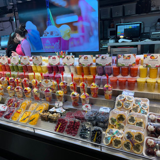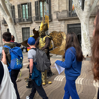 Nous avons découvert la Boquería, (grand marché de fruits et légumes) et les statues animées.